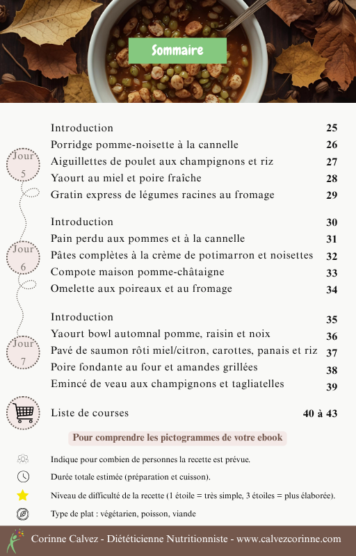 Un ebook de 7 jours de menus, recettes, liste de courses complète ainsi qu’un semainier à imprimer et à mettre sur votre frigo !